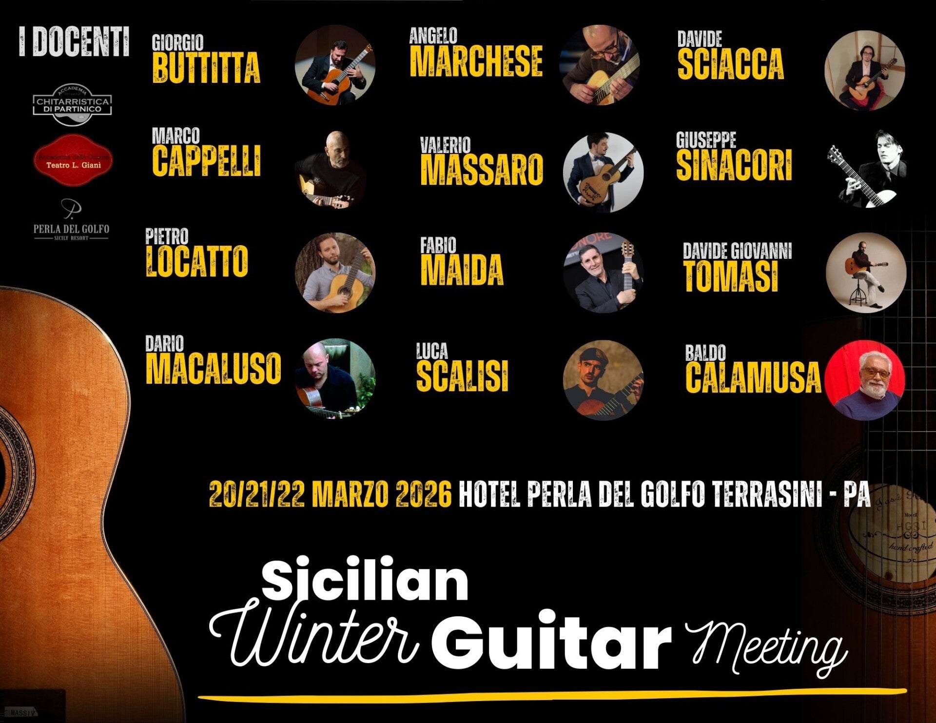 Il primo Meeting chitarristico dei più grandi Chitarristi che operano in Sicilia , 20/21/22 Marzo 2026 presso l'hotel Perla del Golfo di Terrasini - Pa